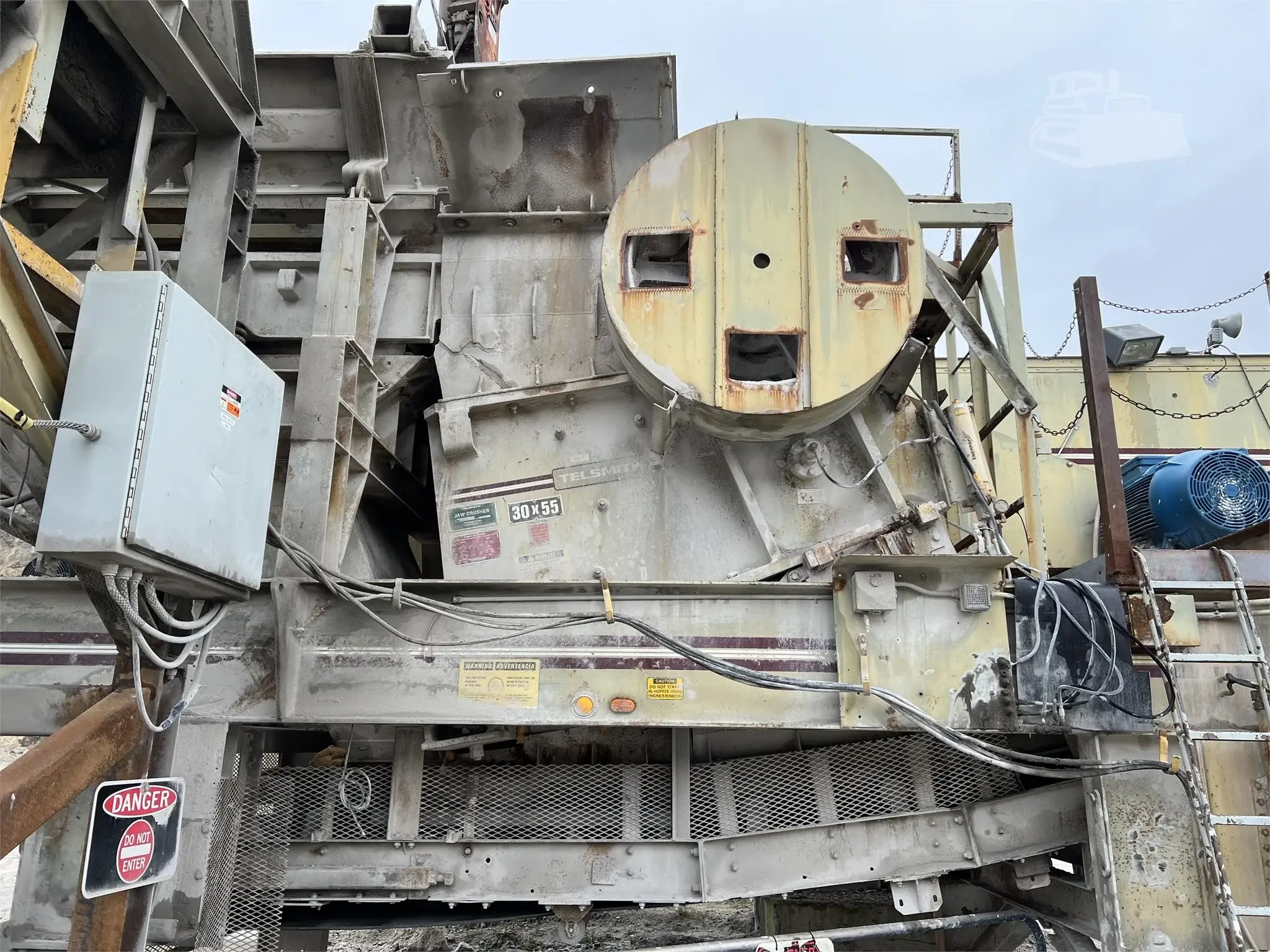 1999 Telsmith 30X55 D Electric Jaw Crusher Order# C18934 Motor - 200Hp Weg (2 Yrs. old) Hopper Extensions Breaker Feeder 54x20 - SN: 323M2268H 50Hp Weg (1 Yr. old) Discharge belt width 54" Discharge belt height C/L of shaft 9'11" to ground Teledyne Hammer SN: 3814-97-1 Model # PB12H/TB425X Axles for transport are available and included with machine. Everything is in working / running condition. Machine is currently located on a jobsite in Perrysburg, OH. Willing to negotiate price if sold as it sits/assembled. Control Trailer not included Serial Number: 222M8021 Condition: Used