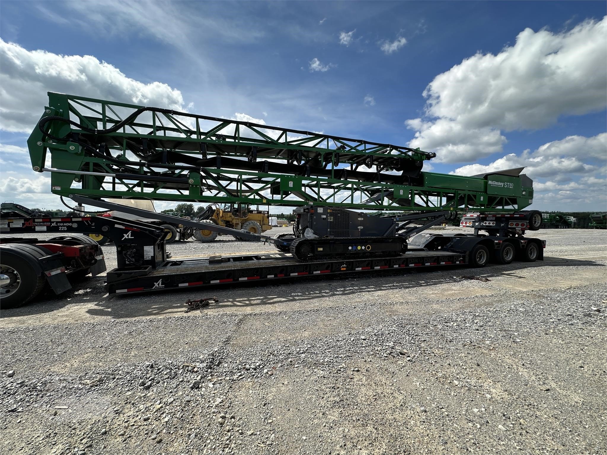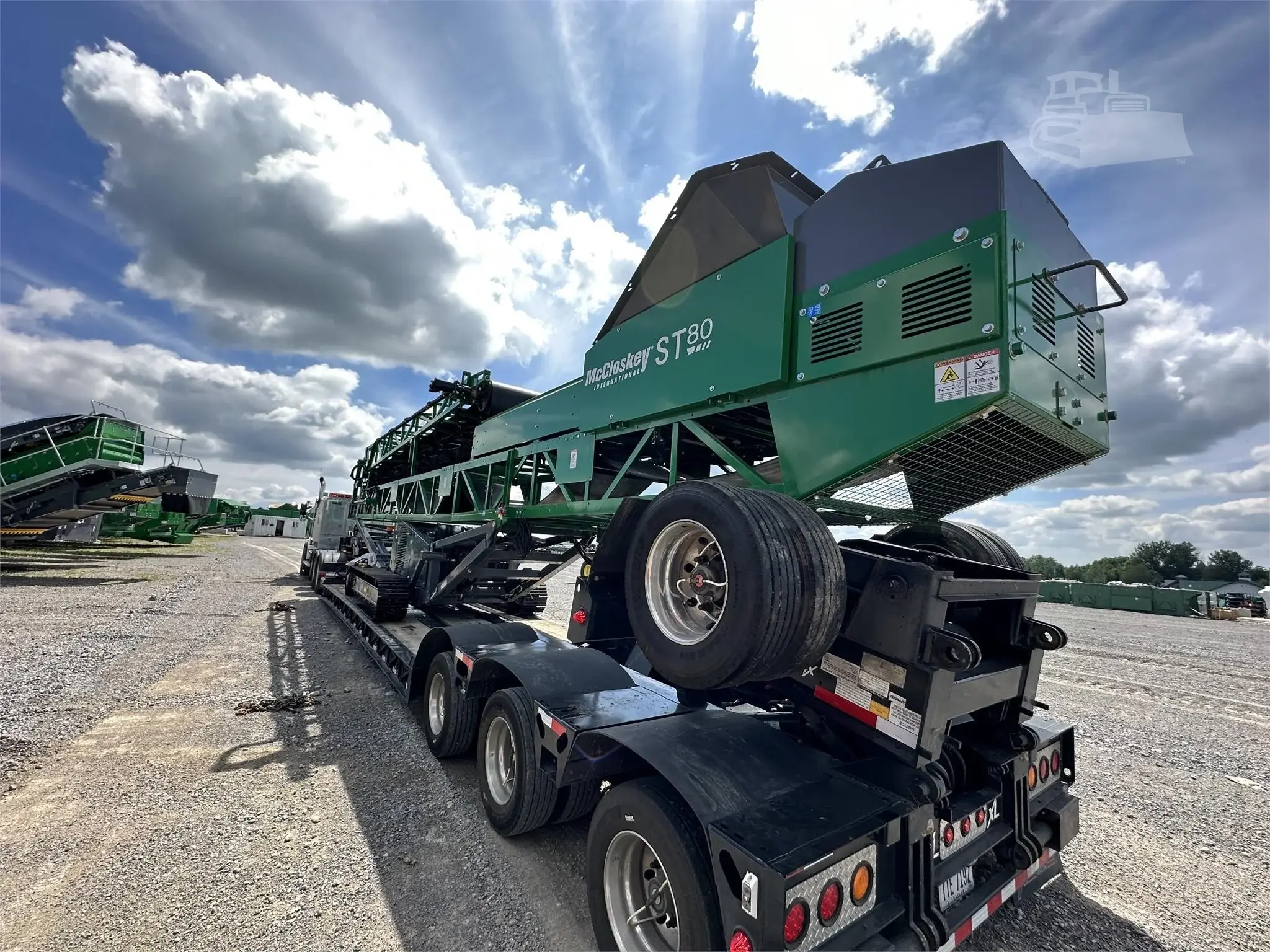 The 2025 McCloskey ST80 Wheeled Stockpiling Conveyor is a high-performance, mobile stockpiling solution designed to elevate productivity and efficiency for quarries, mining operations, and aggregate processing. Engineered for heavy-duty use, this conveyor combines robust construction, cutting-edge hydraulics, and intuitive mobility, making it the ultimate choice for high-capacity stockpile applications. Key Features Heavy‑Duty 36″ × 80′ Conveyor Belt – Equipped with a durable 900 mm × 24.38 m belt, the ST80 delivers reliable material flow for long-term operation. Powerful 49 kW (60 hp) Tier 4/Stage V Diesel Engine – Efficient, emissions-compliant powertrain keeps the conveyor running strong on-site. Row‑Towable Wheeled Chassis – Trailer-style mobility enables fast relocation between sites—without requiring a truck and trailer. Hydraulic Folding Frame & Top‑Fold Design – Allows rapid setup and teardown (under 5 minutes), facilitating efficient transportation and deployment. Large Feed Hopper & Rugged Truss Frame – Designed to accommodate bulk material from loaders or excavators safely and consistently. Industry‑Leading Stockpile Performance – With a maximum belt angle of 22.5° and a setback axle, it achieves stockpile heights of approximately 9.3 m (30' 6″) and capacities up to 1,500 m³ (1,950 yd³) standard. Impressive Throughput Capacity – Standard production of 500 tph, with optional upgrades pushing capacity up to 800 tph. Built‑In Safety & Serviceability – Equipped with air brakes, mud-flaps, lights, and ample service access for maintenance ease. Ideal Applications Aggregate Plants & Quarries – Achieve high stockpiles with long, continuous runs of material. Mining Operations – Rapidly build and manage bulk stockpiles in challenging environments. Recycling & C&D Sites – Efficient material handling with excellent setup flexibility. Contractors & Earth-Movers – Mobility-focused design allows for swift relocation and deployment. Why Choose the McCloskey ST80? High-Capacity Stockpiling: Superior stockpile volumes per conveyor length thanks to steep angle capability. Maximum Mobility: Wheeled, row-towable design enables swift repositioning—no separate transport vehicles needed. Rapid Deployment: Hydraulic folding frame and swinging conveyor ensure efficient setup and teardown. Versatile Power Options: Standard diesel power, with optional electric or dual power to suit onsite needs. Robust & Easy to Maintain: Rugged truss construction, convenient service access, and safety components reinforce durability and uptime. The 2025 McCloskey ST80 Wheeled Stockpiling Conveyor is the go-to solution for operations demanding high-throughput, portable conveying, and professional-grade stockpile management. Optimize your site workflow and enhance your material handling capabilities with the ST80 today! Hours: 0 Serial Number: 904026 Condition: New