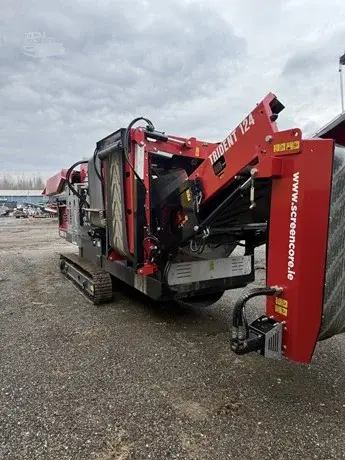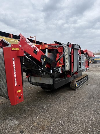 Heavy-Duty 12' x 4' Tracked Scalper • Cat 2.8 Tier 4, Stage 5 • Top Deck Punchplate • Bottom Deck Mesh • 10' Tracks • 12'x4' top and bottom deck • Catwalk both sides • Heavy one-piece hopper • 12" Chassis Riser Kit for Added Ground Clearance • Telescopic Extending Side Conveyors • Radio Remote Control Hours: 25 Serial Number: 24-336 Condition: New