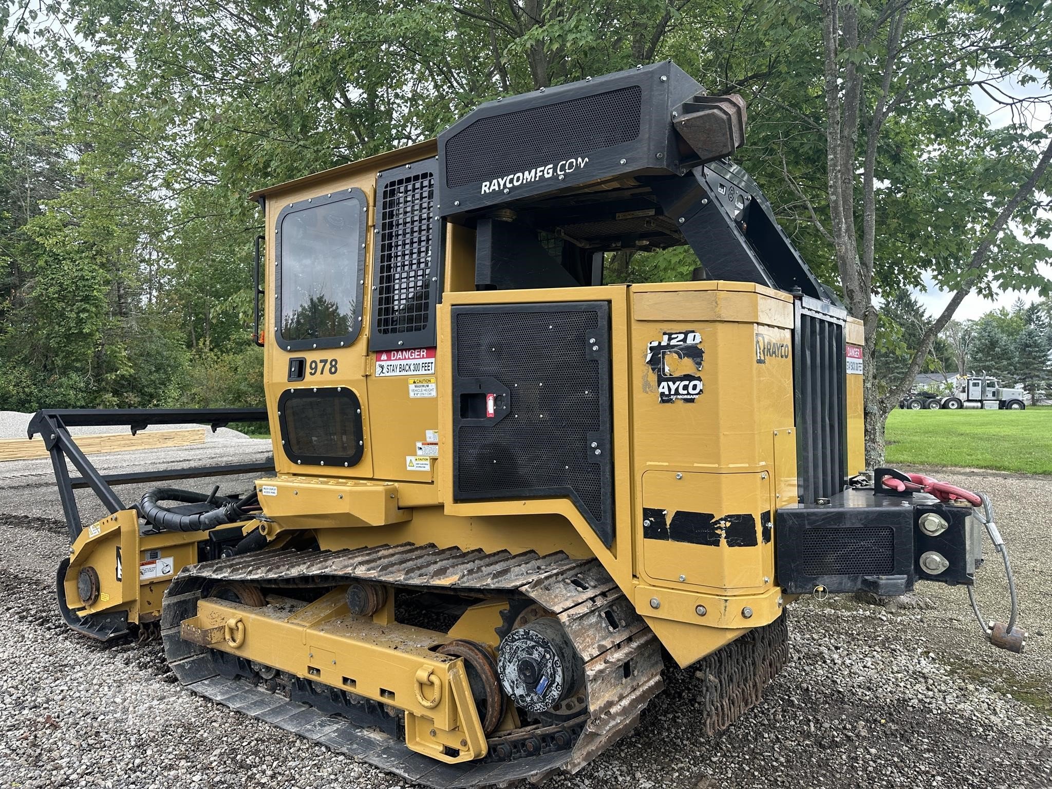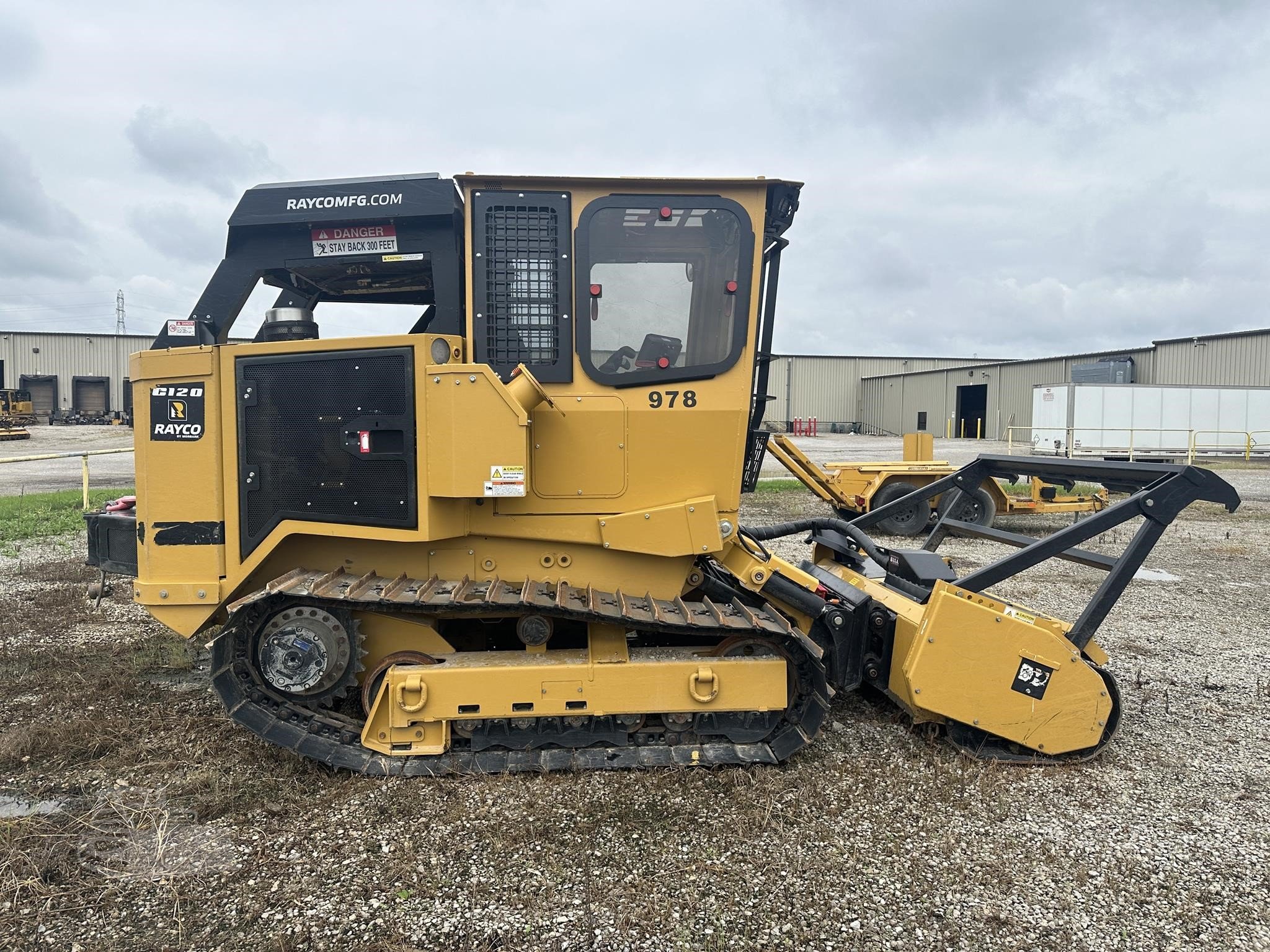 CRAWLER BASE MACH C120SA STEEL -Engine: 121-HP Cummins Tier 4F diesel -Weight: Carrier with Mulcher: 17,120 lbs. -Undercarriage: steel track 20" single grouser -Hydraulic: closed loop, 52 GPM, 5500 PSI to mulcher attachment -Hydraulic: hi/low flow, open loop hydraulic circuit to power attachments -Transmission: hydrostatic drive - low range: 2.6 mph / high range: 4.7 mph -Fuel tank capacity: 35 gallons (132.5L) DEF tank capacity: 10 gallons (37.9L) -Attachment plate: standard skid steer (SAE style) -Winch: Rear-mounted hydraulic 12,000lbs capacity -Primary cooling: engine fan, auto-reversing -Secondary cooling: Limbriser-mounted hydraulic cooler with reversing fan -ROPS, FOPS and OPS certified -Enclosed cab with heat and A/C -Cab with hydraulic tilt and automatic latching rear cab pins -Front window with steel window guard -Back-up camera with dedicated display -Windshield wiper with 4L reservoir and 32" single blade -Three escape exits: door, roof, RH side window -High back seat, heated and air-ride suspension -LCD panel: display faults, gauges and information -Side slope inclinometer -6 high visibility flashing amber strobe lights -Lighting: protected high output LED lighting - (6) front, (2) rear, (1) per side -Radio - AM/FM/Bluetooth with USB . FM120 FORESTRY MOWER 6' -with 6' cutting width (36 Quadco Beaver 2-bolt teeth) Attachments Mulcher Year 2023 Mulcher Manufacturer RAYCO Exterior Screens on ROPS Yes Interior A/C Yes Hours: 400 Serial Number: C120SA0070823 Hours Meter: Accurate / Verified Condition: Used