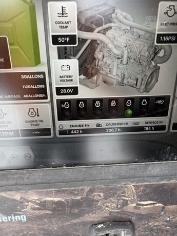 The TJ-2440 Jaw Crusher continues IROCK’s focus on quality, durability, and productivity. With heavy duty cheekplate design, a 40” wide jaw and user-friendly control panel which has excellent machine diagnostics, the TJ-2440 provides contractors with a highly portable option while meeting all production expectations. At 8.2' wide, it’s ideal for applications that require a high degree of mobility. Maximum productivity is delivered through the enhancements to the deeper jaw box, including a faster jaw speed and a larger gap between the crusher discharge and main conveyor feedboot. The TJ-2440 retains the core values expected in a full size IROCK Jaw Crusher, including high capacity production and heavy duty build, packaged for efficiency and mobility. Engine CAT® C7.1 225 HP Transport Height 10 feet 6 inches (3.20 m) Transport Length 45 feet 2.6 inches (13.78 m) Transport Width 8 feet 2.5 inches (2.50 m) Weight-w/ magnet & side conveyor 76,280 lb (34,600 kg) Crushing Chamber 40 inches (wide) x 24 feet (pitman opening) Stockpile Height - Main Conveyor 11 feet 4.2 inches (3.47 m) Stockpile Height - Side Conveyor 8 feet 2 inches (2.50 m) Hours: 442 Serial Number: 79332 Condition: Used