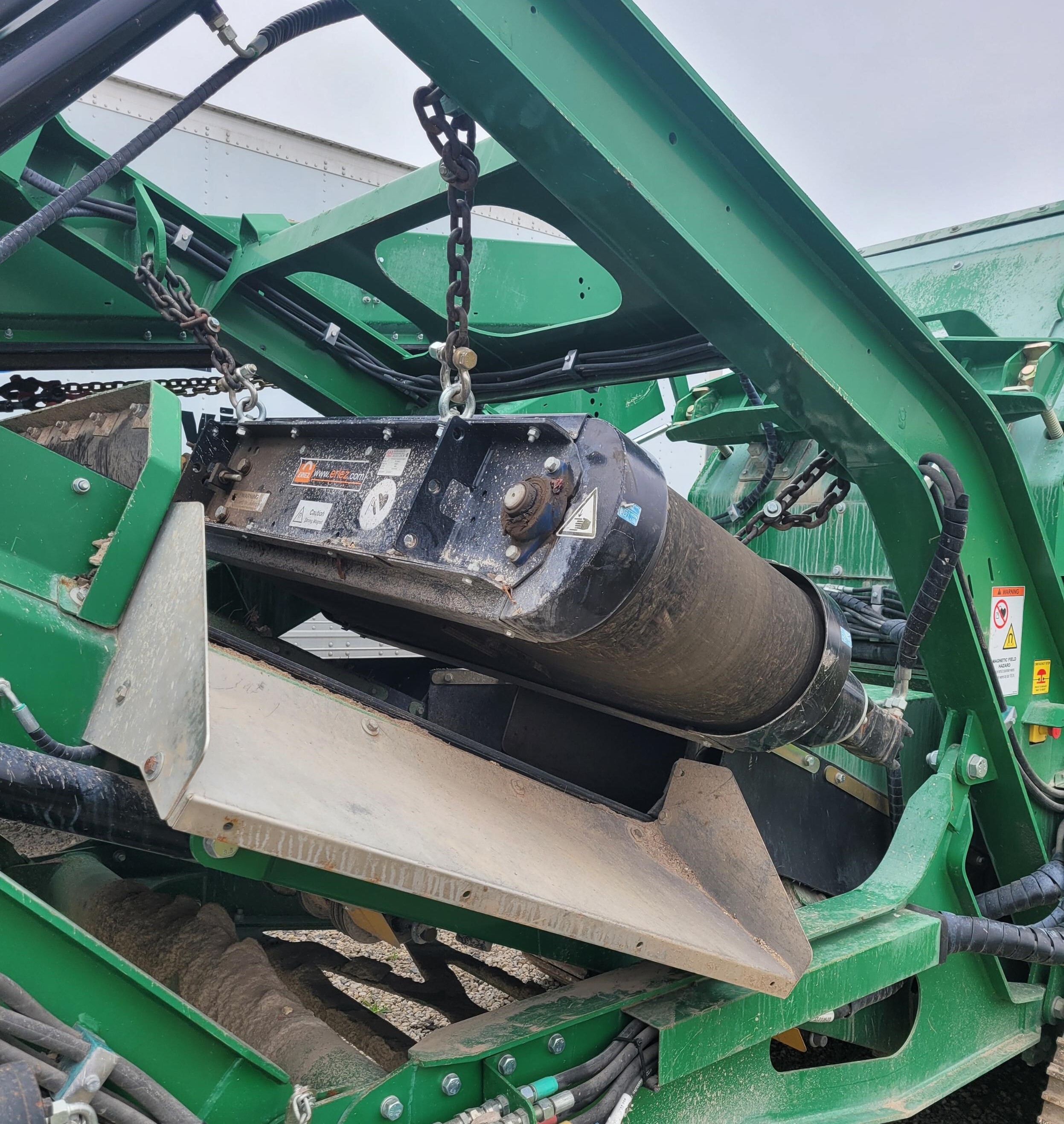 2019 I34R impact crusher with 723 hours, 3.6-yard grizzly feeder, 34×25.6 impactor, Volvo D8 engine, multiple conveyors; includes remote control
